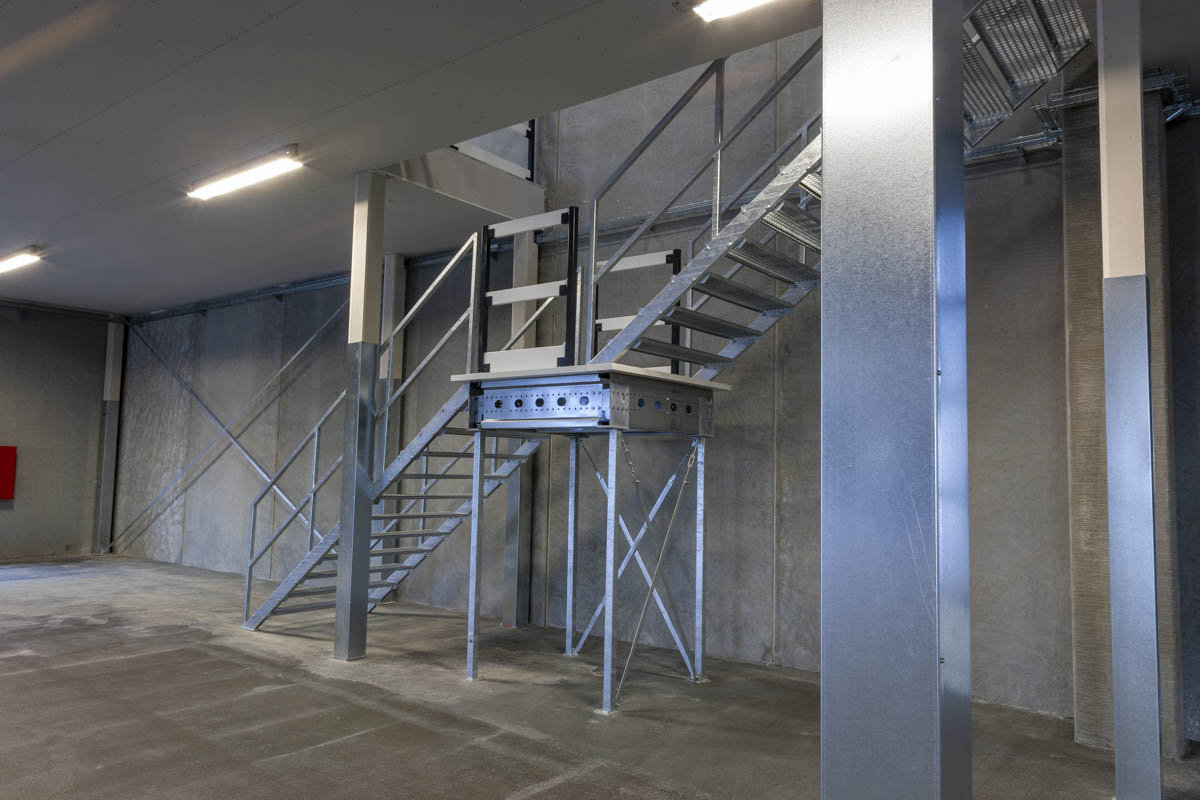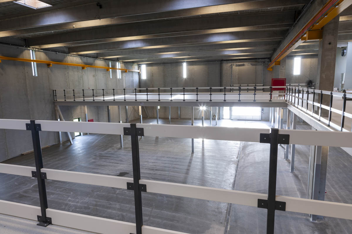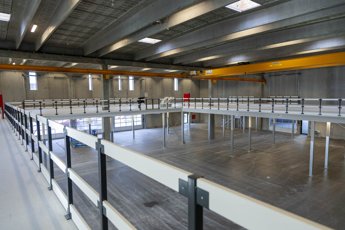 Mezzaninen er til værksteds- og lagerbygningen hos Vestforsyningen og er brandsikret iht. DS/EN 13501-2.