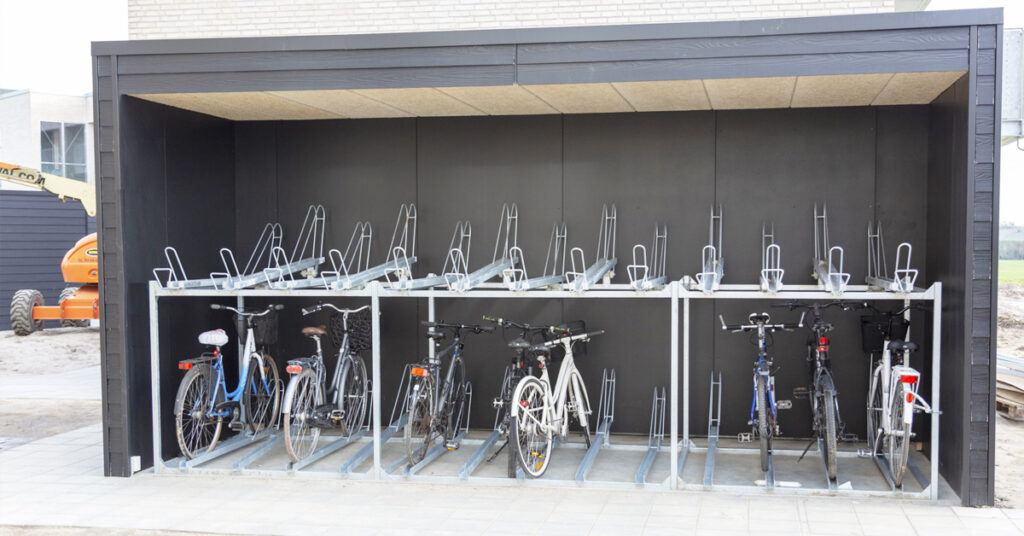 Her har vi leveret og monteret cykelstativer i 2 etager til i alt 432 cykler i udendørs cykelskure.
