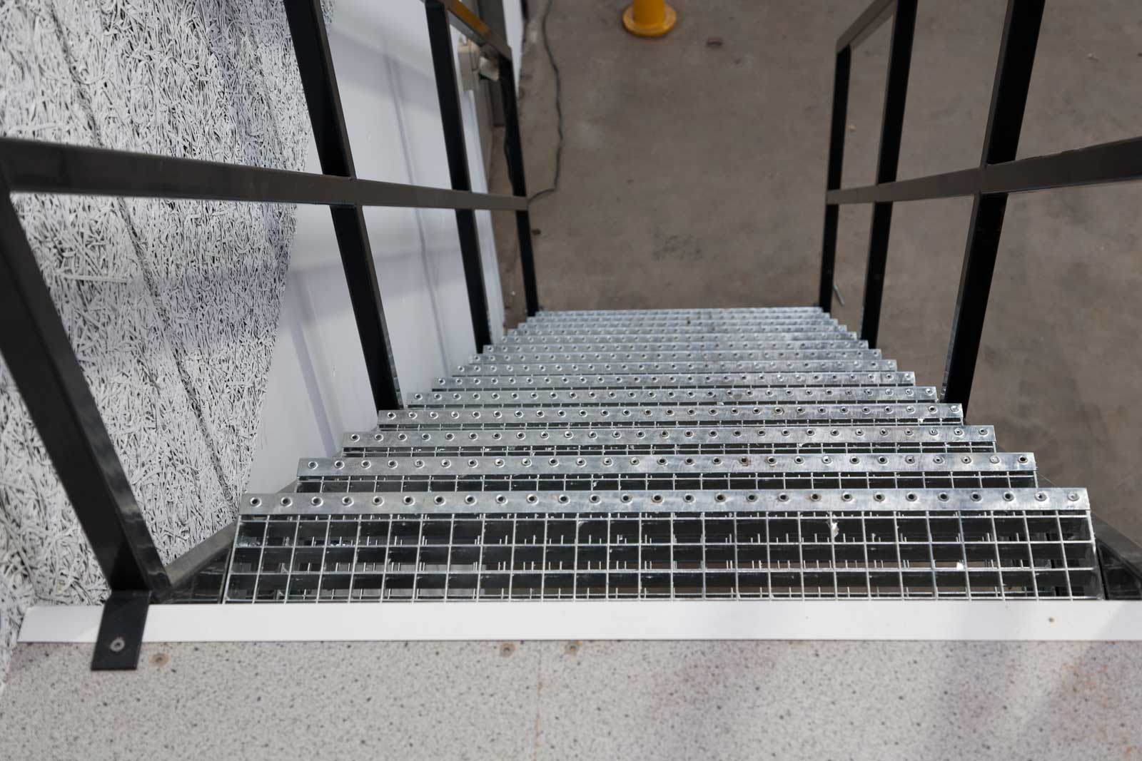 Trappen er leveret med lakeret gelænder og skridsikre galvaniseret trin.