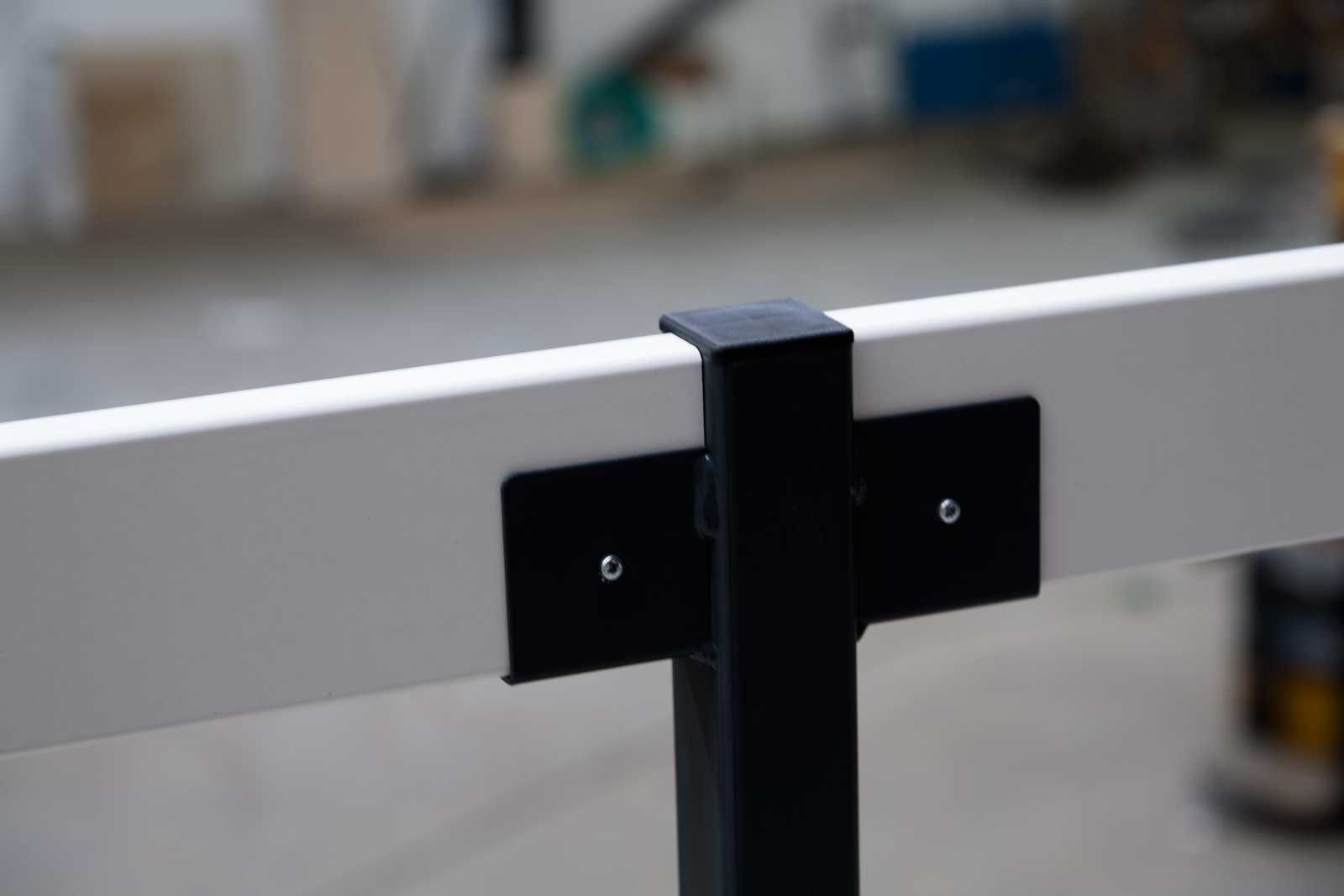 Den leverede løsningen er opbygget med galvaniserede profiler der er monteret i ét plan, hvilket giver en meget lav byggehøjde på kun 488 mm.