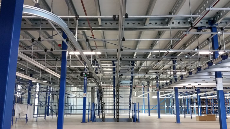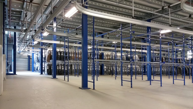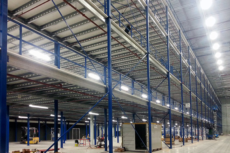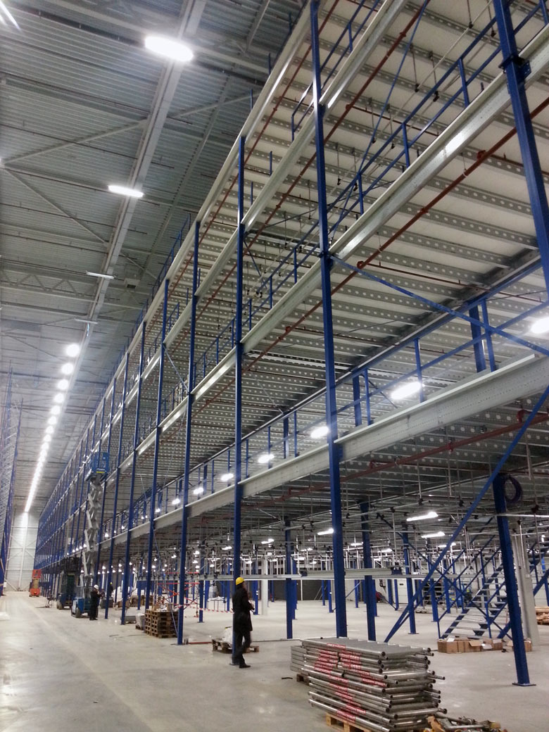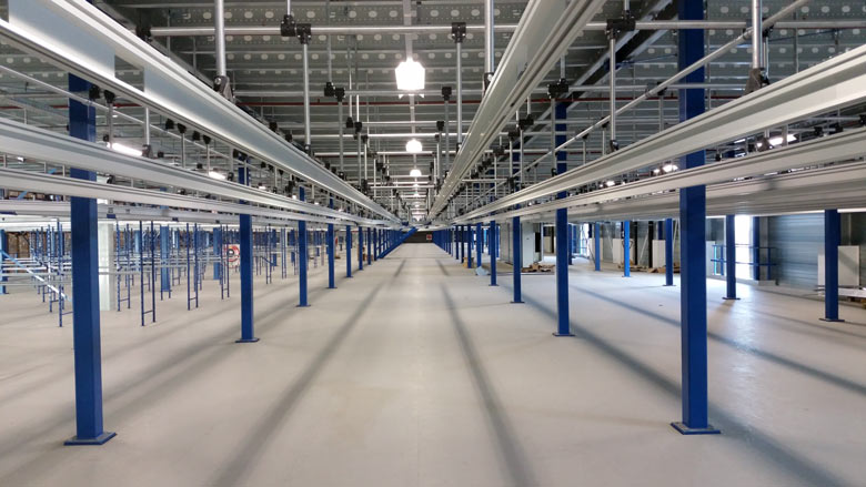 På det 16.000 m2 store lager indgår mezzaninen og dens bærende konstruktion består af koldtvalsede stålsektioner, som produceres i et moderne koncept der er både mindre kompliceret og til mindre omkostninger end dens modstykke. Det modulære søjlesystem kan nemt demonteres, flyttes og opbygget igen et andet sted, eller for den sags skyld forlænges.