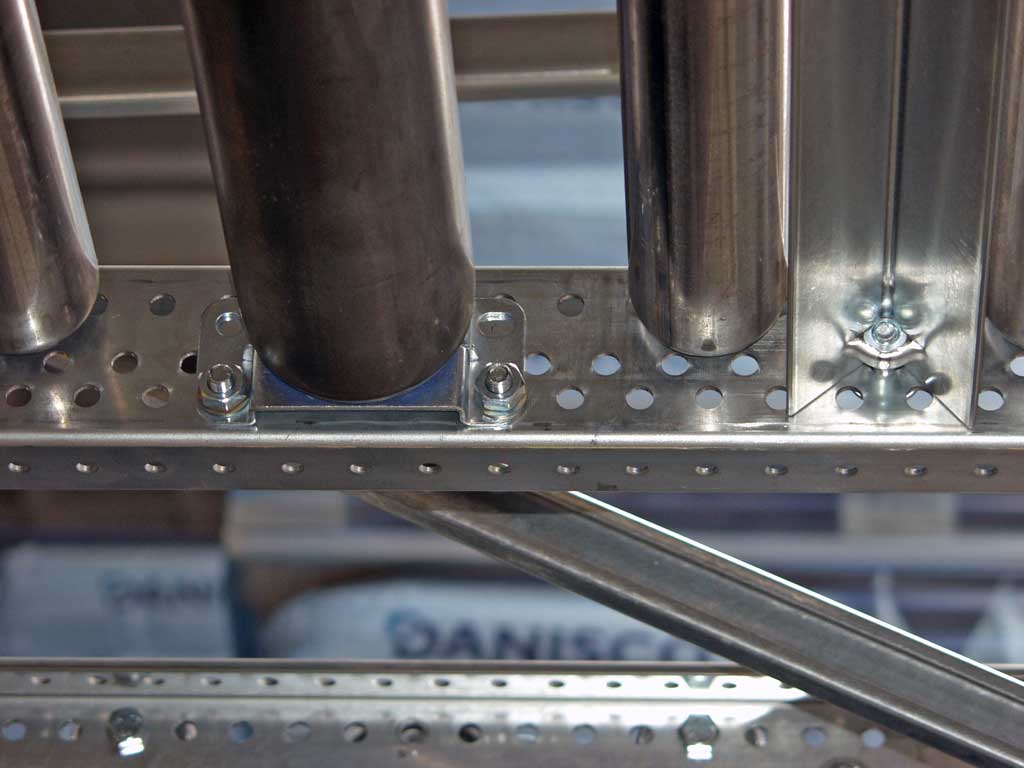 I alle indkørsler er der under stigeben monteret elgalvaniseret firkantrør der er afsluttet med endeluk og i montagehuller er der isat gummiprop af hensyn til hygiejnen.