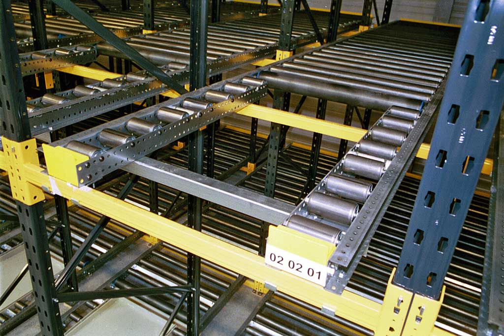 Indretning af palle- og plukkelager med gennemløbsreoler