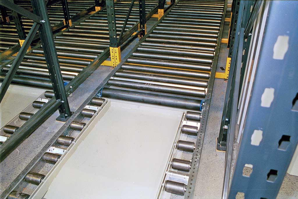Anlægget betjenes med El-stabler eller gaffeltruck og alle rullebaner er derfor forsynet med 2-delte baner, ved gulv endvidere med en rampe som vist på foto.