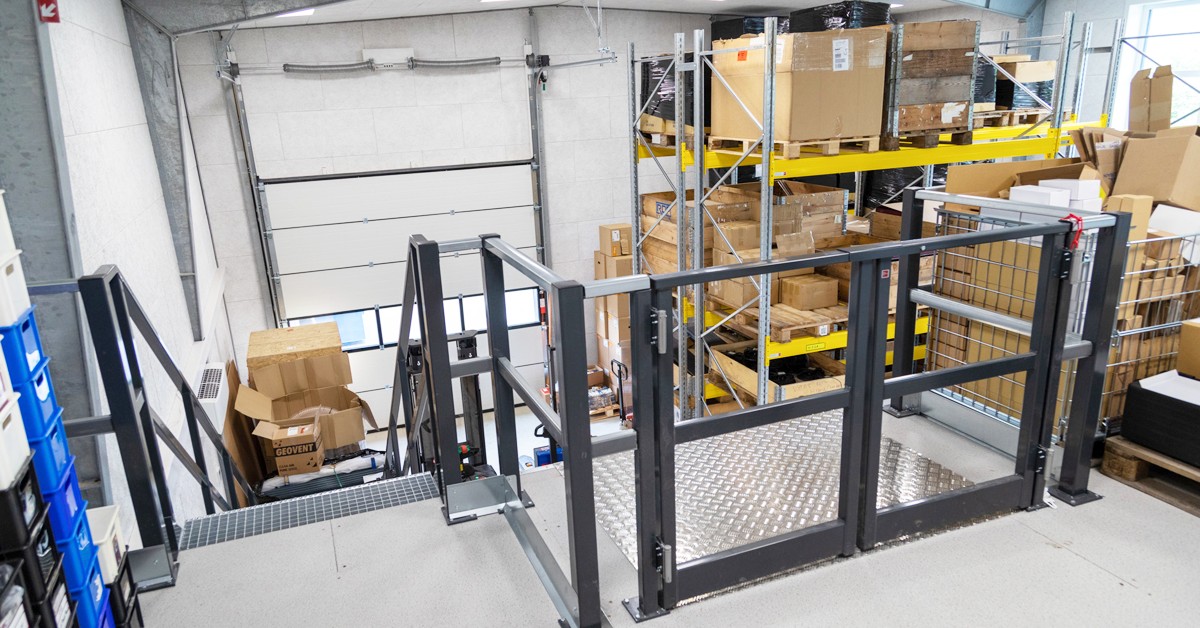 Levering og montering af 146 m2 mezzanin, pallereoler med 64 pallepladser, lagerreoler og en Modula Lift lagerautomat.