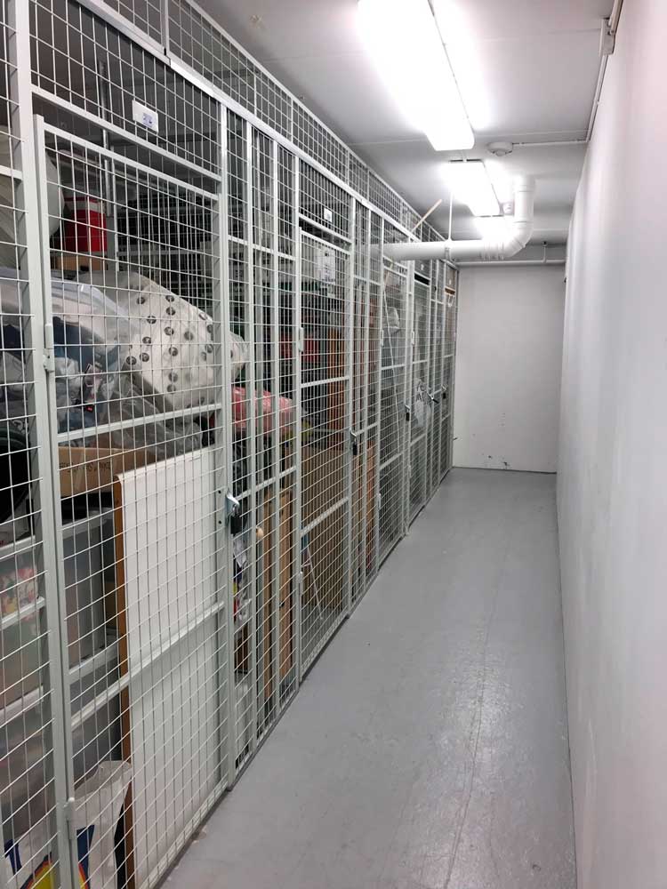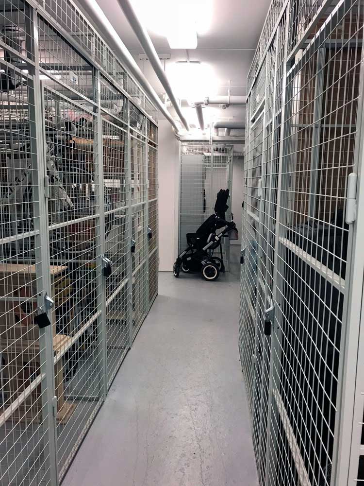 I kælderetagen har Hans Schourup A/S lavet en komplet indretning til samtlige lejligheder med netvægge fra Axelent. Pulterrummene er indrettet meget kompakt, og hvert rum er unikt i tilpasning, så det er indrettet efter bygningens beskaffenhed. Den lyse og lette indretning med pulterrum er elegant, indbydende og klæder bygningen, som fremstår i absolut bedste kvalitet.