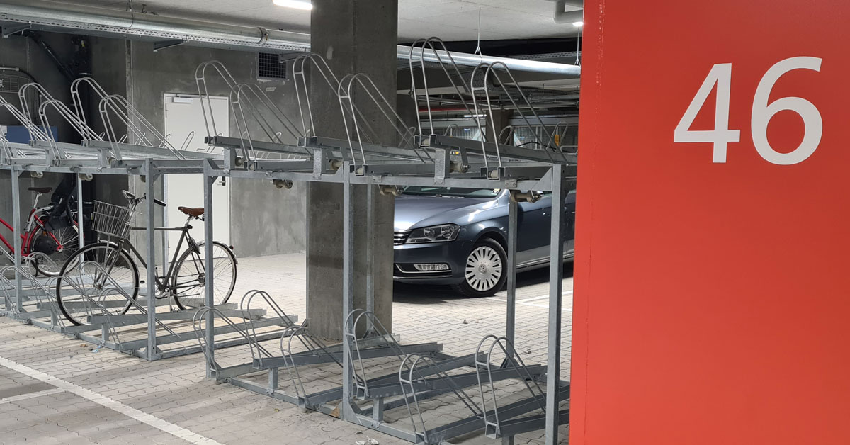 - Levering og montering af cykelstativer i både 2 etager og 1 niveau til 431 cykler i p-kælder og terræn