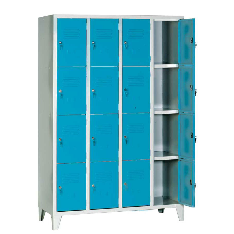 Skabet her har 16 låger, alle med cylinderlås inkl. 2 nøgler og ventilation øverst i lågen.