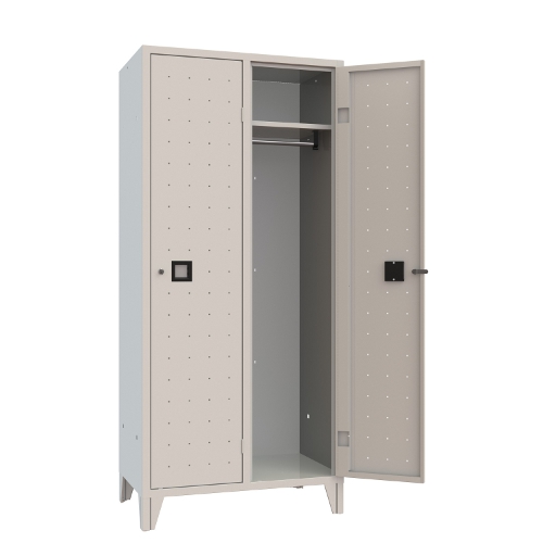 Det har to låger begge med cylinderlås inkl. 2 nøgler og perforering for optimal udluftning.