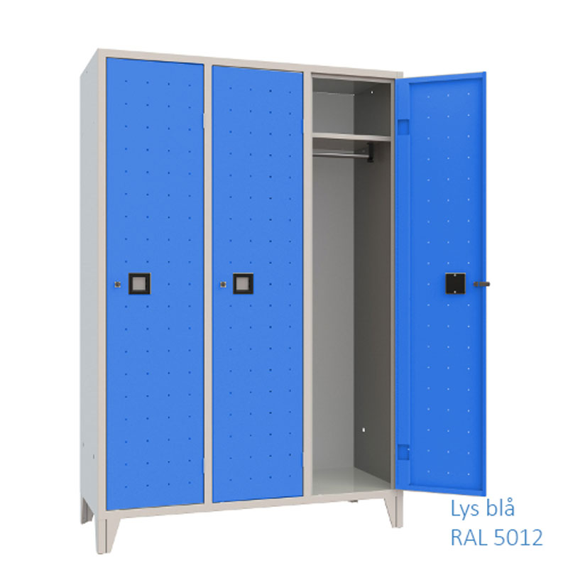 De to låger i skabet er med cylinderlås inkl. 2 nøgler og hele lågen er perforeret for optimal udluftning i skabet.