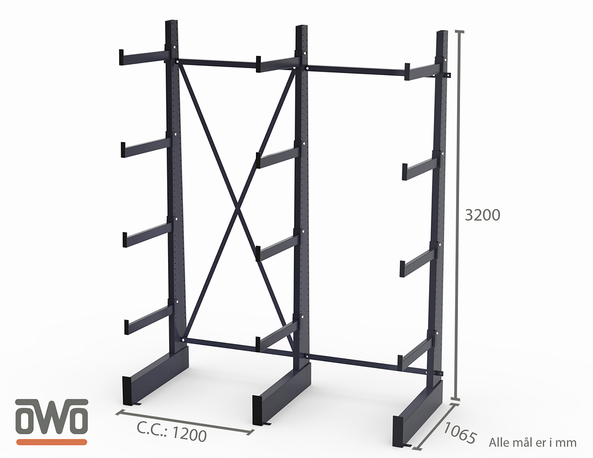 Pladegrenen leveres i længden 600 mm belastning op til 250 kg.
