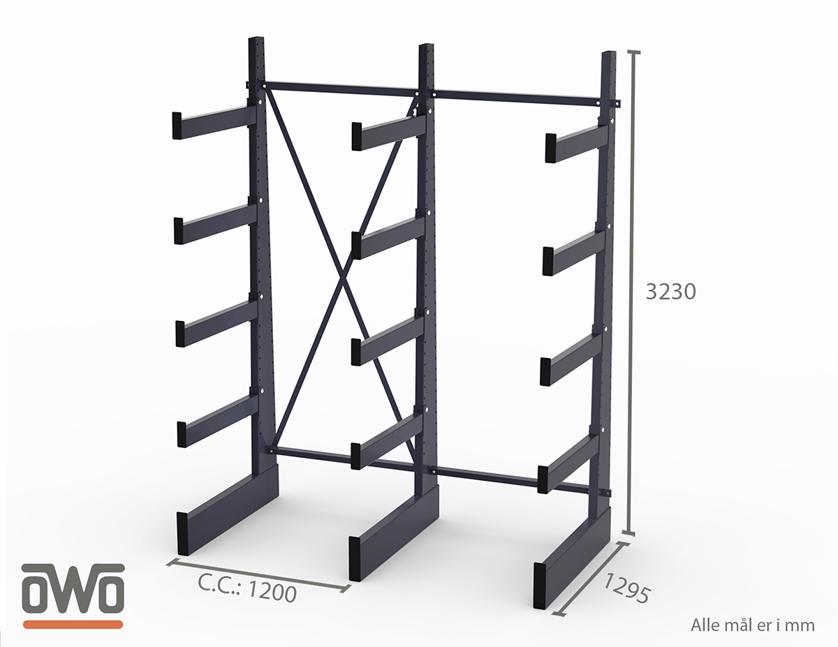 Pladegrenen leveres i længden 600 mm (belastning op til 600 kg).