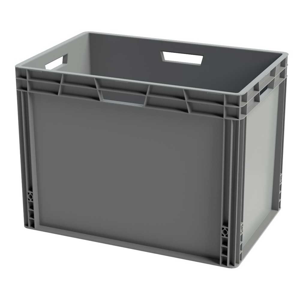 Kasserne er stabelbare, altså kan de stables oven på hinanden indbyrdes samt mellem de forskellige dimensioner og størrelser. De glatte indvendige flader minimerer at snavs samler sig og gør kassen mere hygiejnisk.