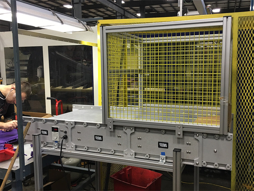 DynaCon er et transportsystem, der består af enhver kombination af lige og vinklede moduler, som hurtigt kan forbindes og dermed skabe et brugerdefineret design.