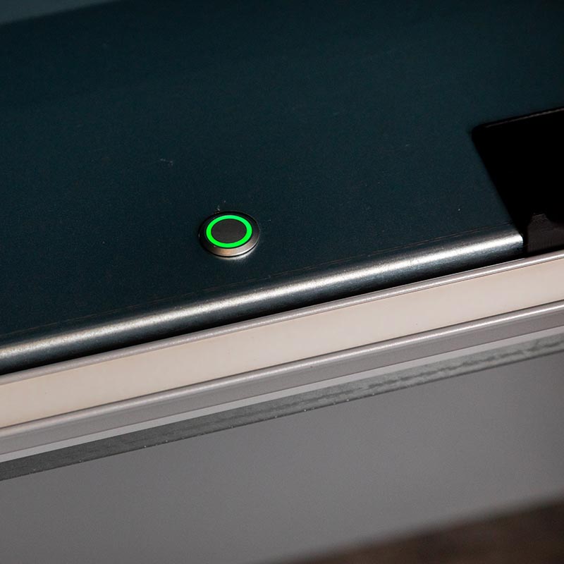En skinne med indbyggede LED lys, er placeret i en række i forkanten af plukkeåbningen.