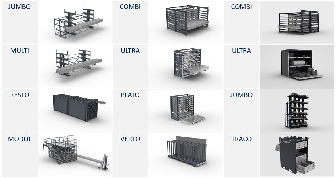 - Skuffesystemer til opbevaring af plademateriale, værktøj og andre produkter op til 3.000 kg.