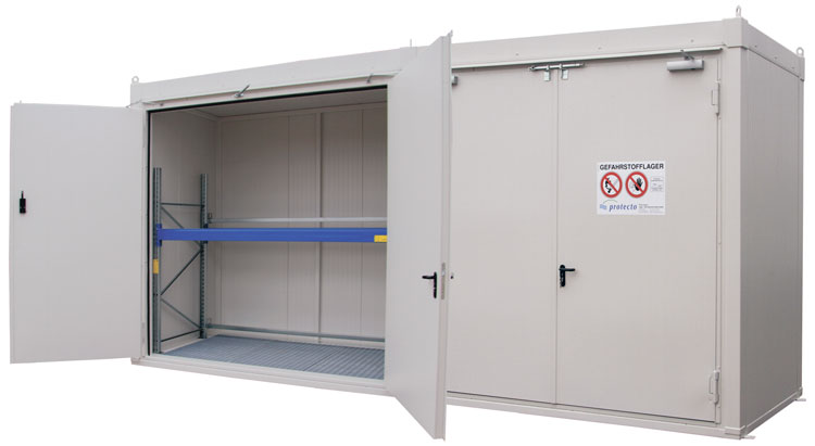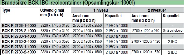 BCK-containerne opfylder alle krav til sikker og miljørigtig lagring og er brandsikre i 90 minutter (F90) både inde- og udefra i henhold til DIN 4120.