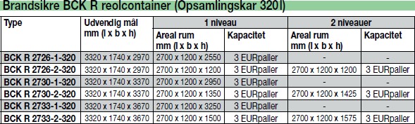 Serie BCK R: brandsikre reolcontainere: