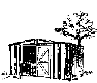 Et tæt skur af træ eller metal. Bunden skal udføres som beskrevet for halvtag.