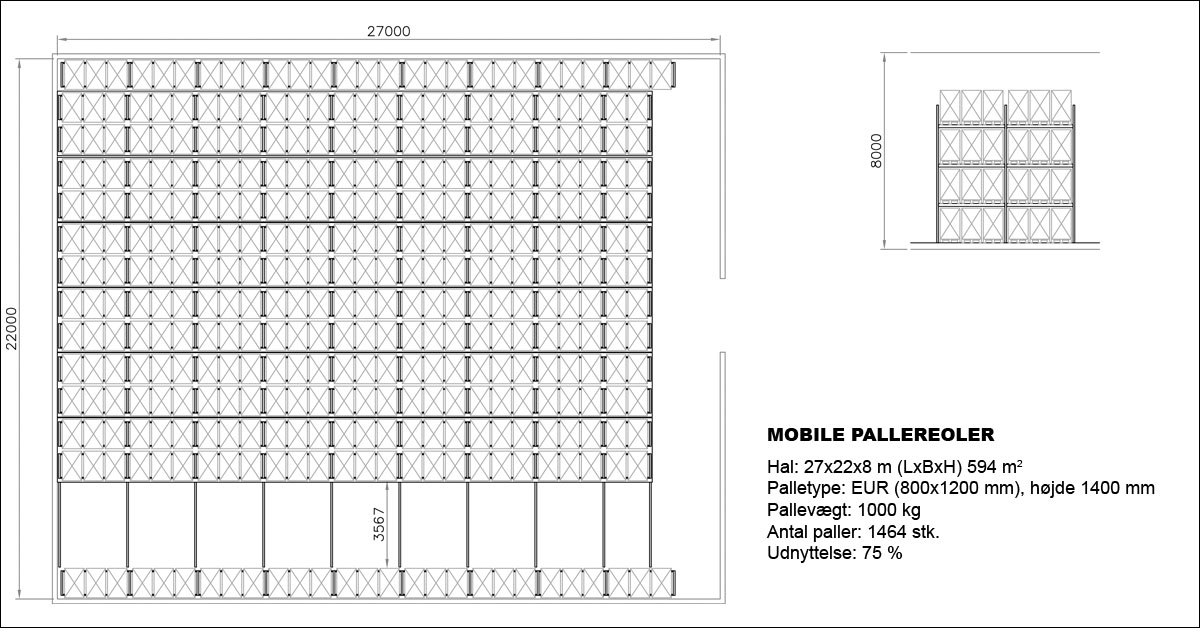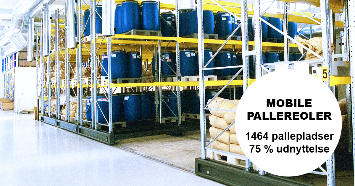 - I forhold til almindelige pallereoler kan der være op til 80 % flere paller på samme areal.