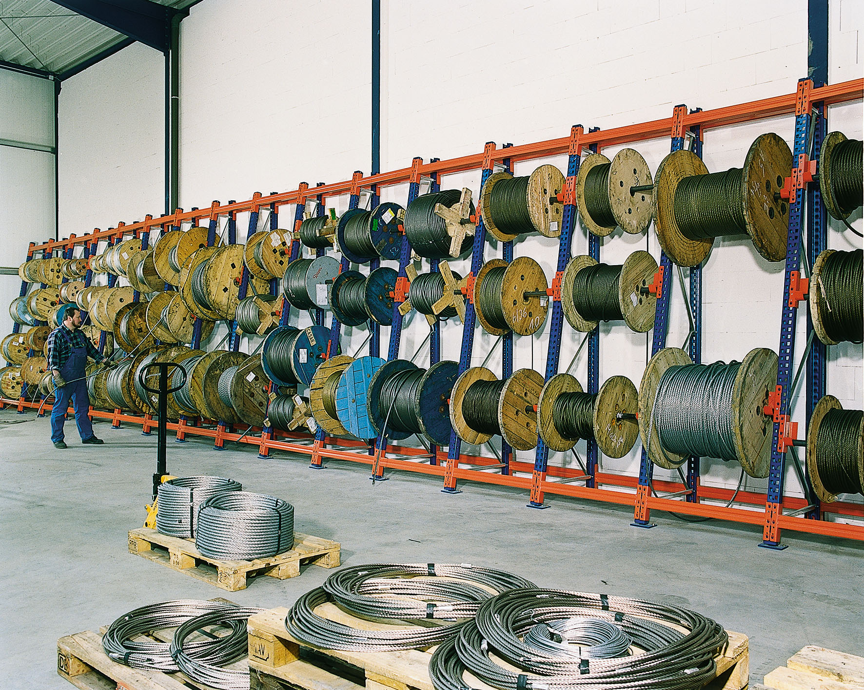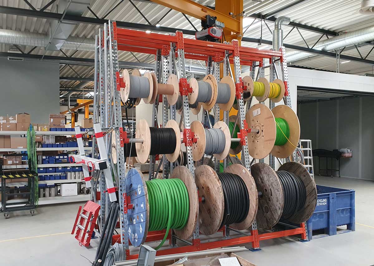 Til effektiv opbevaring og sikker håndtering af feks. kabelruller, papirruller eller tromler tilpasses reolen i forskellige størrelser og dimensioner med højde helt op til godt 5 meter.